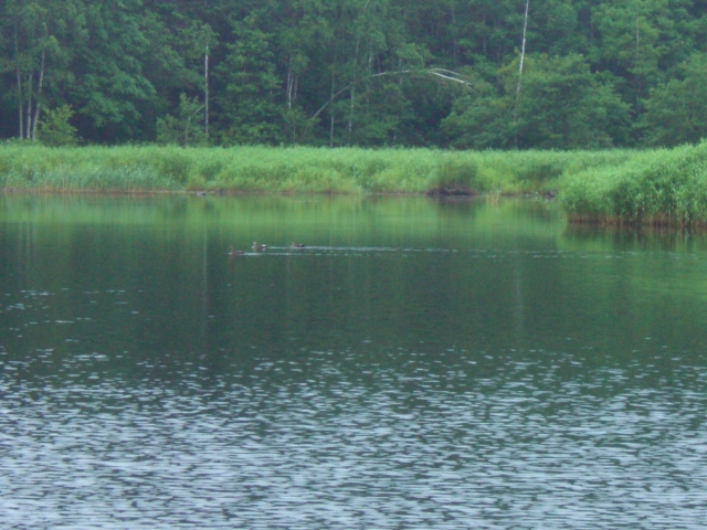 湖面を野鳥が散歩している !