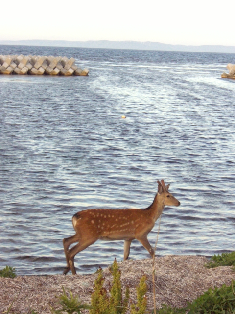 | 海水を飲む 「エゾ鹿」 ! |