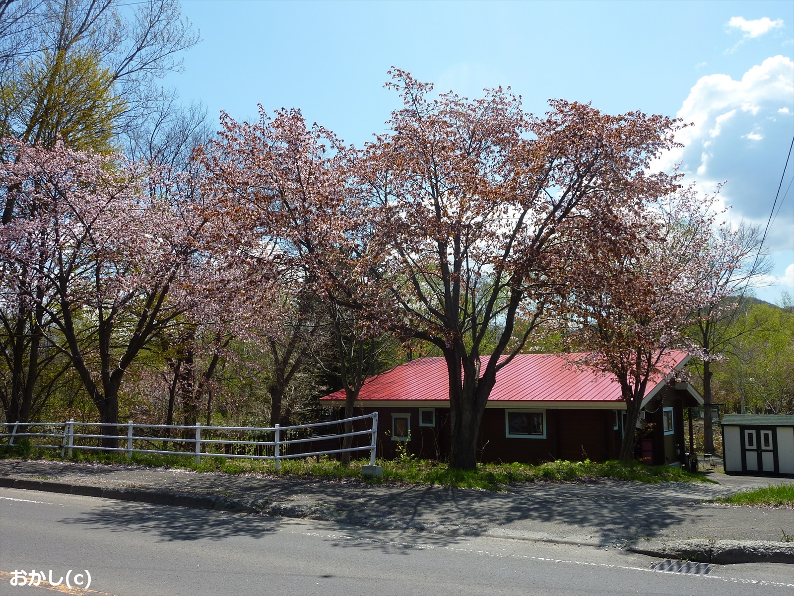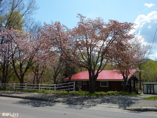 | 赤い屋根とも 桜は 合いますね ♪